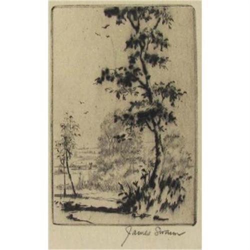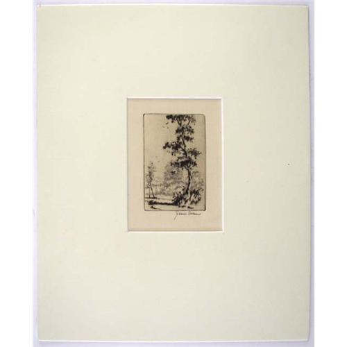 James Swann (1905-1985) (TX & IL) Etching, Landscape, image size 2 7/8" x 2", pencil signed