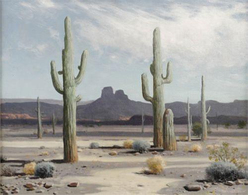 James Swinnerton (1875-1974). Typical Desert Scene. 16" x 20". Oil on Canvas. (est $1,500-2,500).