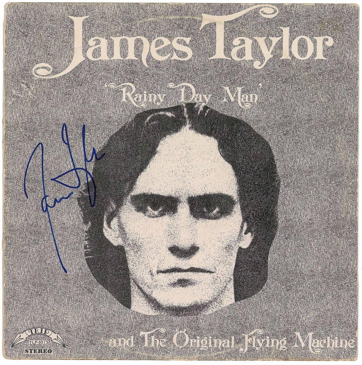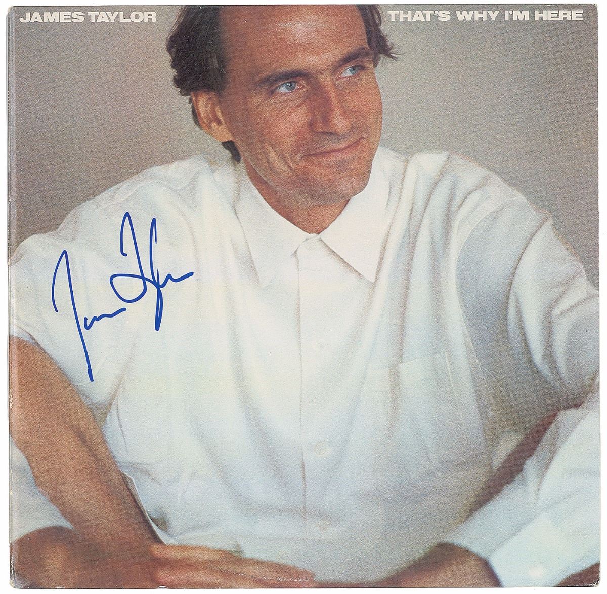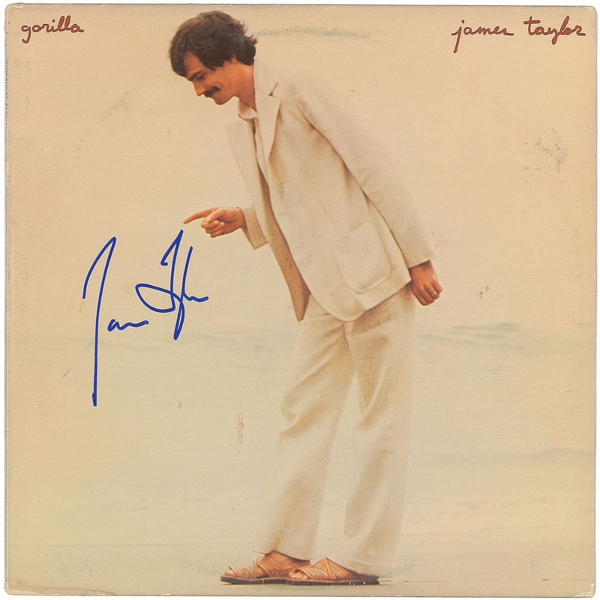 Collection of six albums, each signed in person on the front cover in blue felt tip by Taylor, with titles including: Rainy Day Man; Greatest Hits; That’s Why I’m Here; JT; Gorilla; and In the Pocket. In overall fine condition. The records are not included. Originally obtained by in-person specialist Mike Wehrmann.