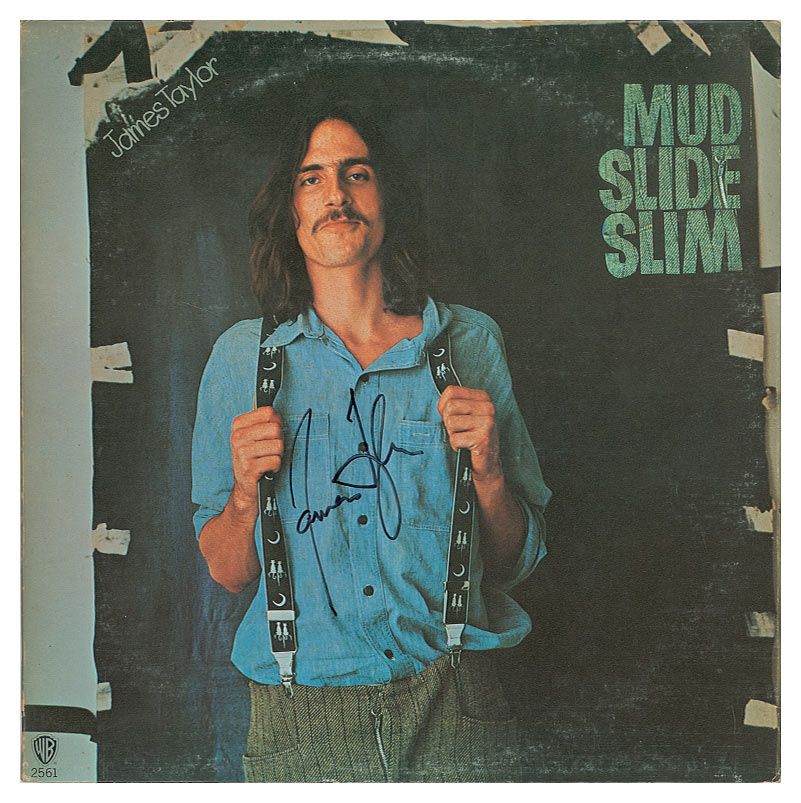 Two signed albums: Mud Slide Slim, signed on the front cover in black felt tip by James Taylor; and Colors of the Day: The Best of Judy Collins, signed on the front cover in blue felt tip by Judy Collins. The records are included. In fine condition, with some scattered light wear to both covers.