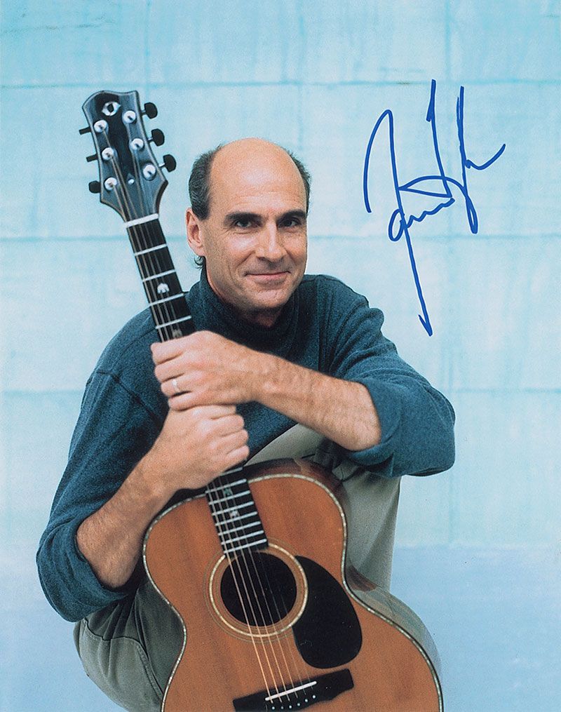 Color satin-finish 11 x 14 photo of Taylor holding his guitar, signed in blue felt tip. In fine condition.
