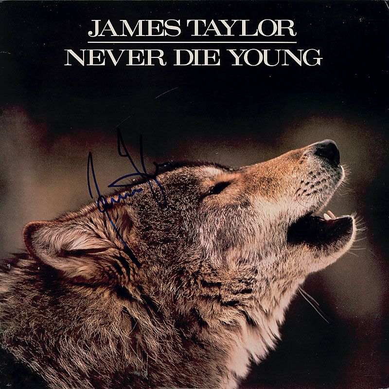 Two albums, That’s Why I’m Here and Never Die Young, each signed on the front cover in blue felt tip. The records are included. In fine condition, with a few edge and corner tip dings.