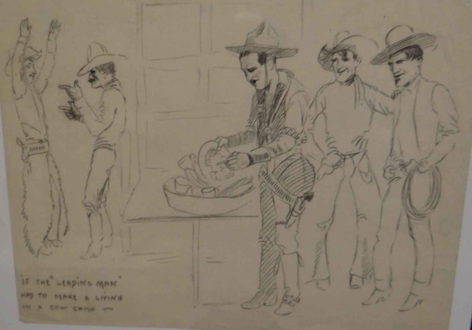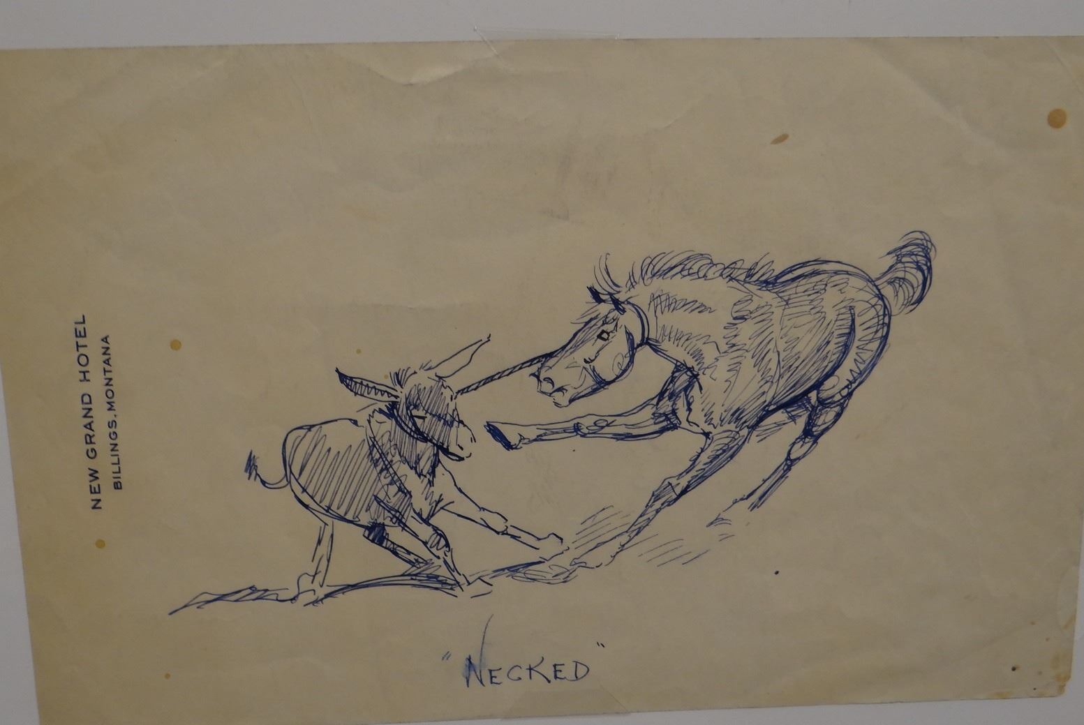 James, Will, 2 original pen & ink drawings, unsigned, 9" x 6" and 8" x 10"