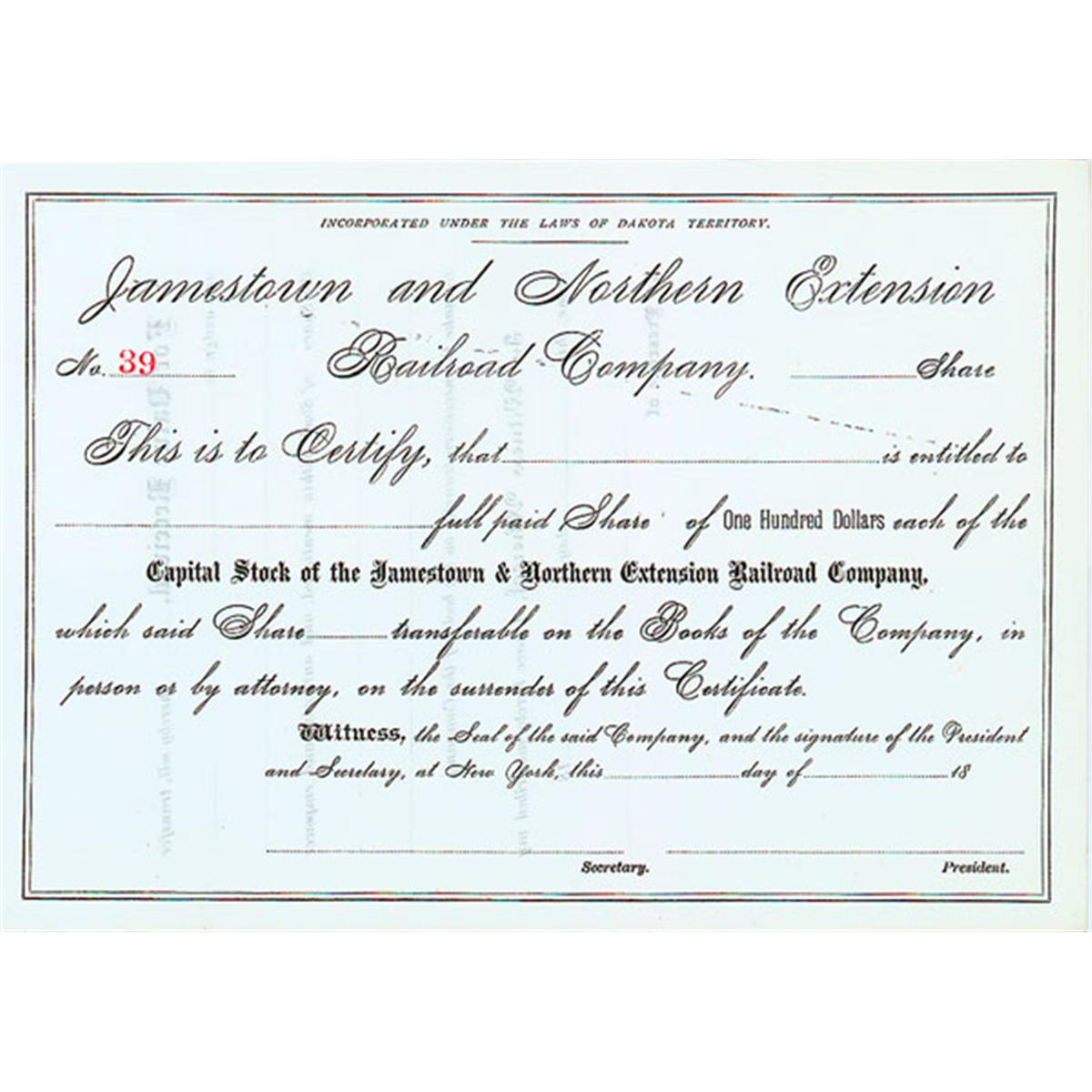 18--. Dakota Territory. Unissued stock certificate. Black/white. Litho. Uncancelled and Excellent.