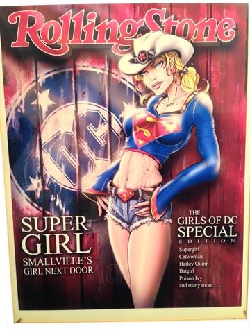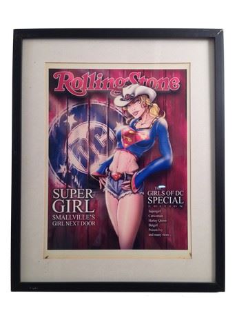 D.C. Comic artist "Jamie Tyndall" D.C. Rolling Stone cover featuring Super Girl Smallville's Girl Next Door. Framed with glass.(17x21).