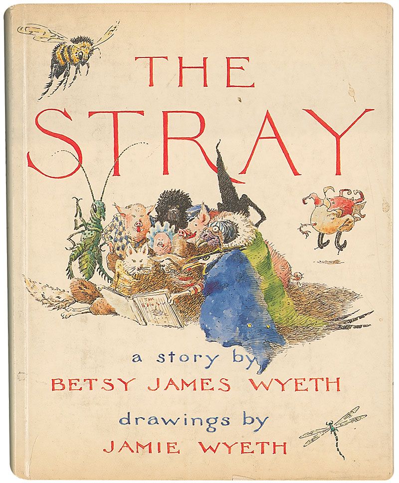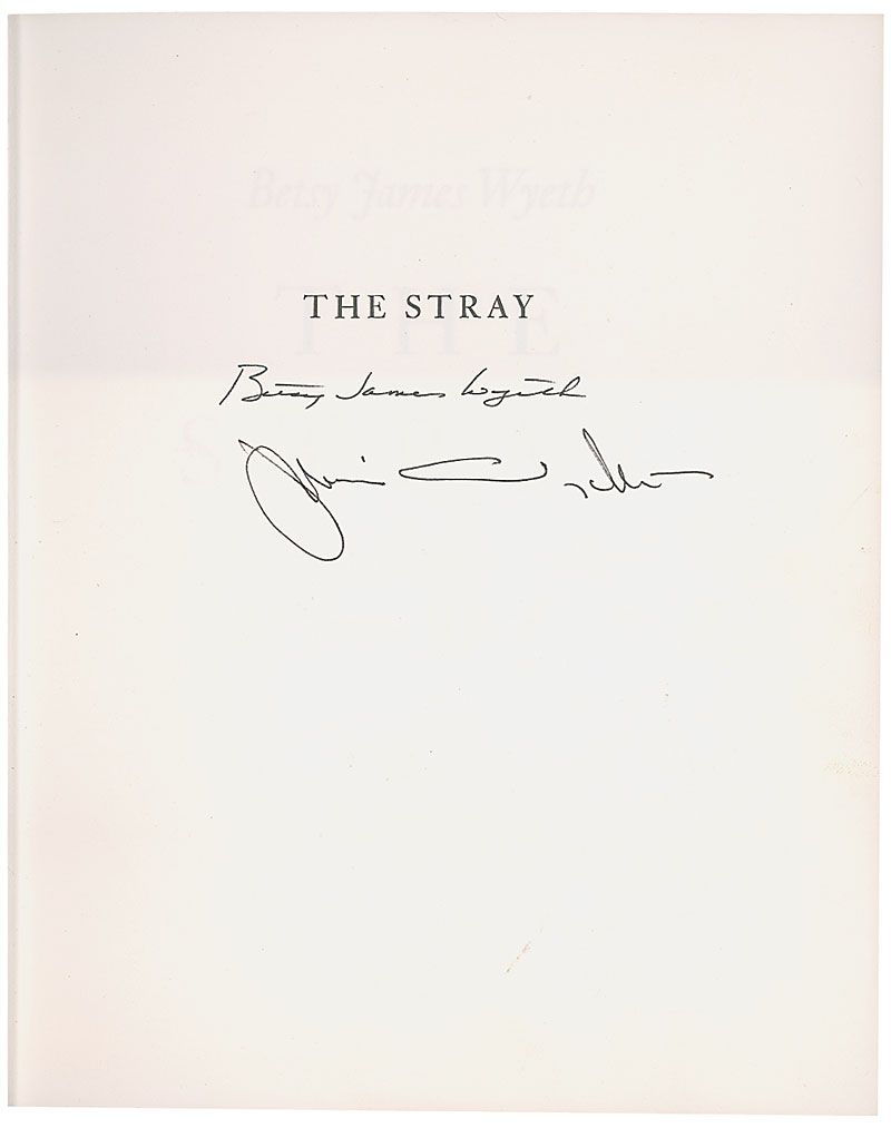 Signed book: The Stray. First edition. NY: Farrar, Straus, Giroux, 1979. Hardcover with dust jacket, 7.75 x 9.5, 185 pages. Signed on the half-title page in black ink by Jamie Wyeth and Betsy James Wyeth. In fine condition, with scattered mild toning and wear to dust jacket.