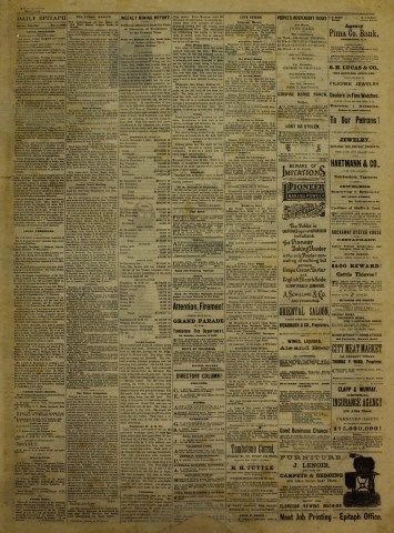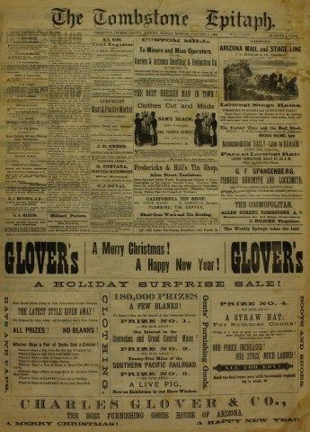 2 sheets with ads by GF Spangenberg Gun Store and the infamous Oriental Saloon, nicknamed the "Slaughterhouse" where Marshall Virgil Earp was ambushed in Dec. 1881. Est. 250-450