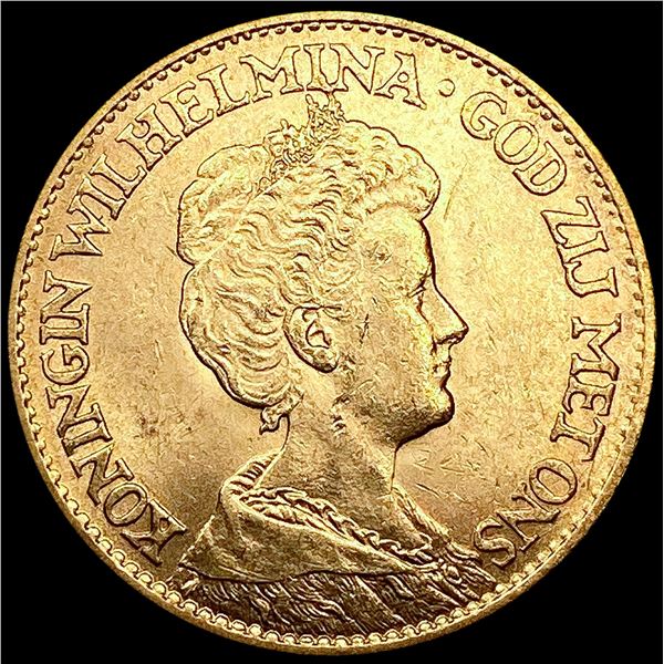 1912 Netherlands .1947oz Gold 10 Gulden CHOICE BU