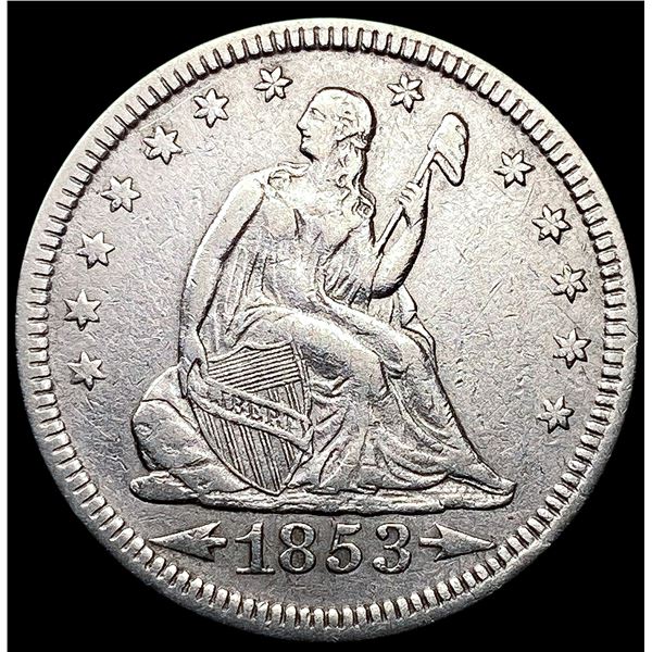 1853 Arws & Rays Seated Liberty Quarter CLOSELY UN