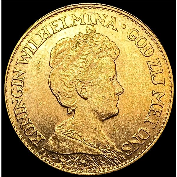 1917 Netherlands .1947oz Gold 10 Gulden CHOICE BU