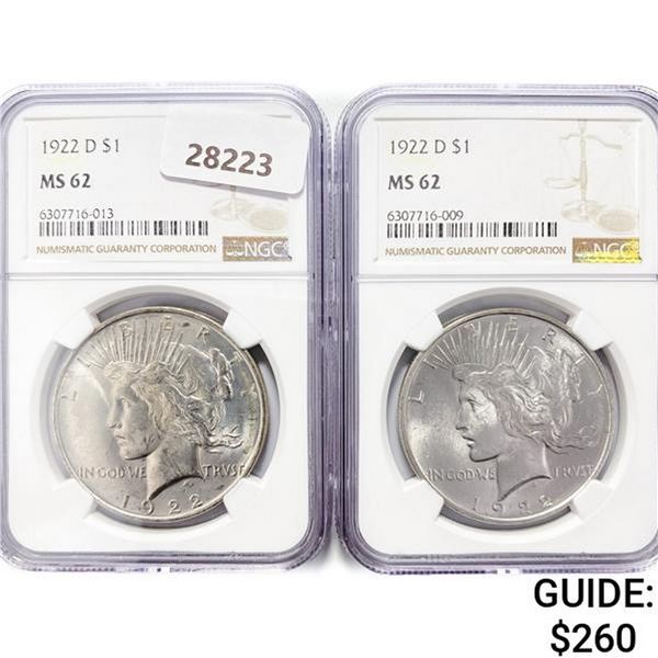 1922-D Set [2] Silver Peace Dollar NGC MS62