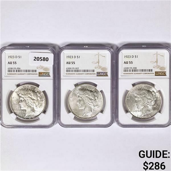 1923-D Set [3] Silver Peace Dollar NGC AU55