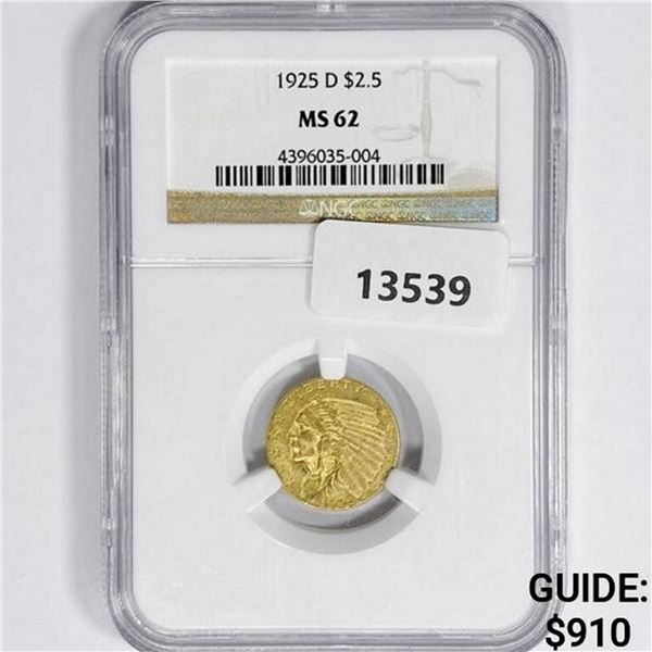 1925-D $2.50 Gold Quarter Eagle NGC MS62