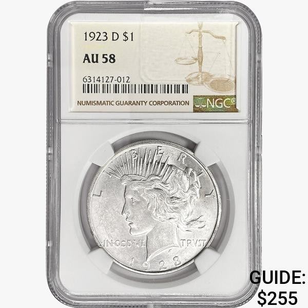 1923-D Silver Peace Dollar NGC AU58