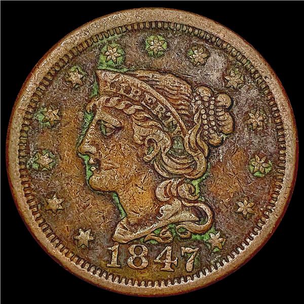 1847 Braided Hair Large Cent LIGHTLY CIRCULATED