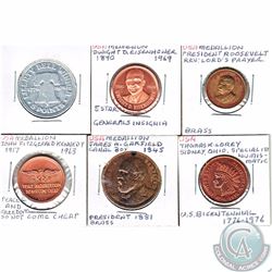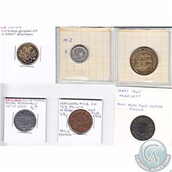 Group Lot of World Tokens; Ingle System, Co-op Token, Vacharon Constantin, MJ, Jeton Queen Victoria, Maxi Mus. 6pcs