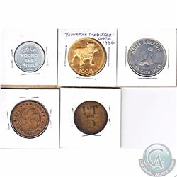 532 - Group Lot of World Tokens; Ingle System, Co-op Token, Vacharon Constantin, MJ, Jeton Queen Victoria,Colonial Acres Coins Ltd.