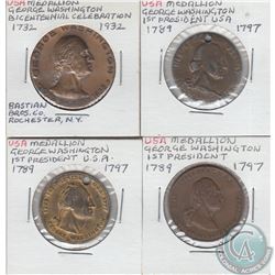 4x United States George Washington Medallions. 4pcs. Please view images for detailed information.