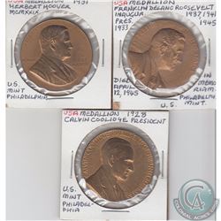 3x 1923-1947 United States Presidential Medallions. You will receive the following Presidents: 1923