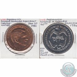 Pair of United States Ronald W. Reagan Medallions. You will receive the Inauguration Medallion and the Commemorative 40th President Medallion. 2pcs