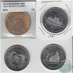 4x Miscellaneous Canada Tokens. This lot includes: 1981 Graven Hurst, 1985 World Vision: Hope for th