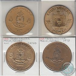 4x United States Hawaii Trade Dollars. This lot includes: Maui Iao Needle - The Valley Isle, 1975 & 1973 Maui Chamber of Commerce, and Kauai - T...