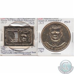 Pair of United States 1917-1963 John F. Kennedy Medallion and Postage Stamp Medallion. 2pcs