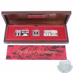 The Royal Standards set of 3x Silver Medallions for the 1977 Silver Jubilee in deluxe wooden display