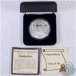 1oz .999 Fine Silver Graduation Medallion (Tax Exempt). 39 mm in diameter.