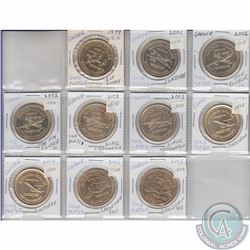 1990, 1991, 1993, 1996, 1999, 2000 & 2001 Gander Newfoundland Aviation Dollars. 7pcs