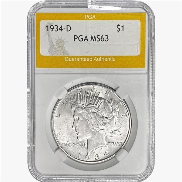 1934-D Silver Peace Dollar PGA MS6341713d - 1934-D Silver Peace Dollar PGA MS63