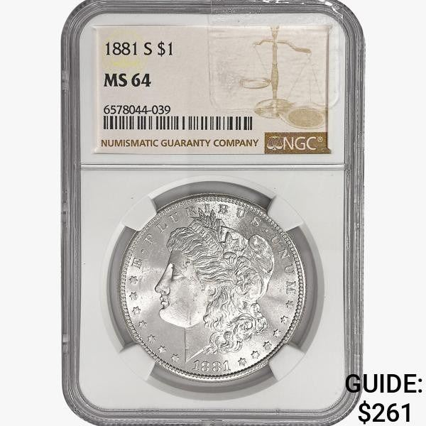 1881-S Morgan Silver Dollar NGC MS64