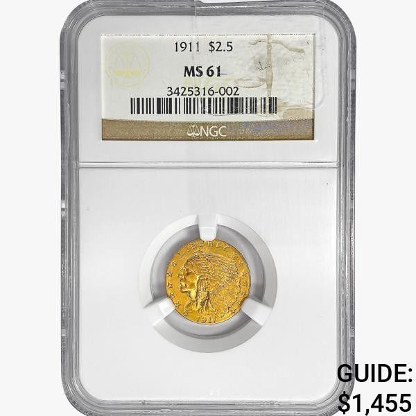 1911 $2.50 Gold Quarter Eagle NGC MS61