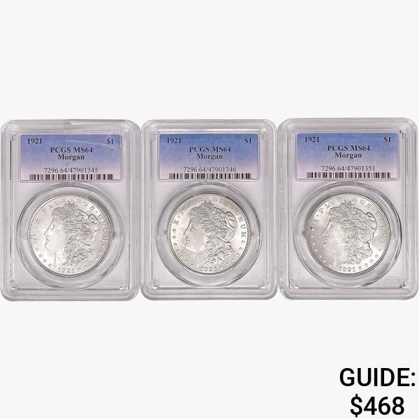 [3] 1921 Morgan SILV Dollars PCGS MS64