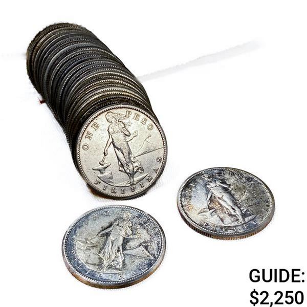 1908 US Philippines Silver Peso Roll (25 Coins)