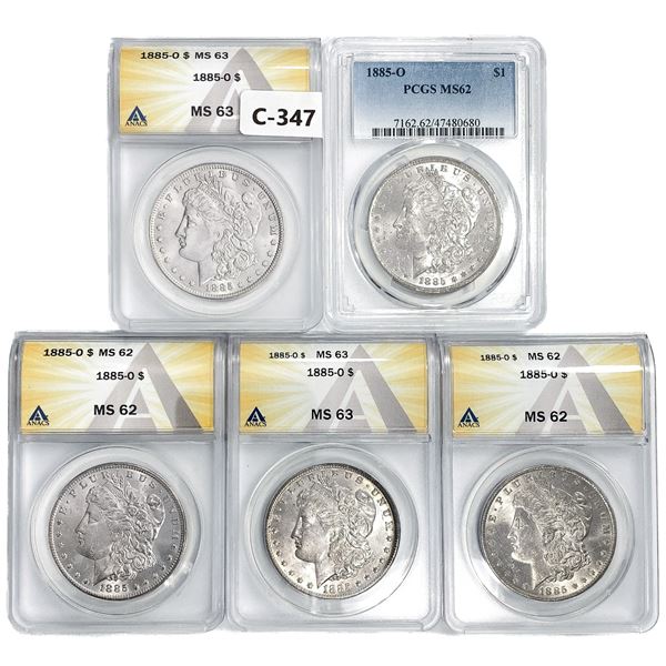 [5] 1885-O Morgan Silver Dollars ANACS/PCGS MS62