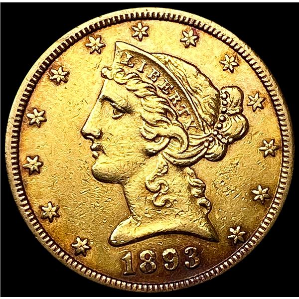 1893-S $5 Gold Half Eagle CLOSELY UNCIRCULATED