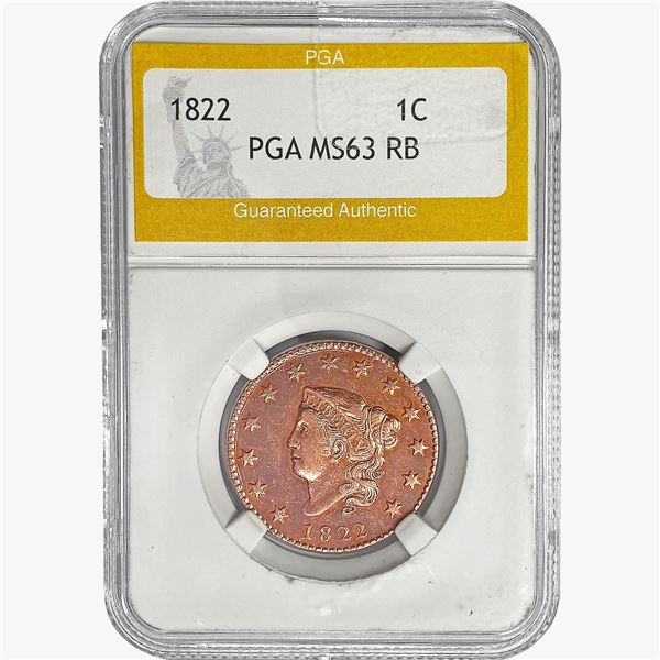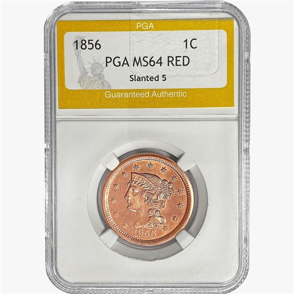 1856 Braided Hair Large Cent PGA MS64 RED Slanted