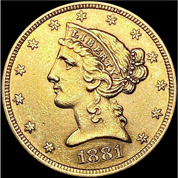 1881-S $5 Gold Half Eagle CLOSELY UNCIRCULATED