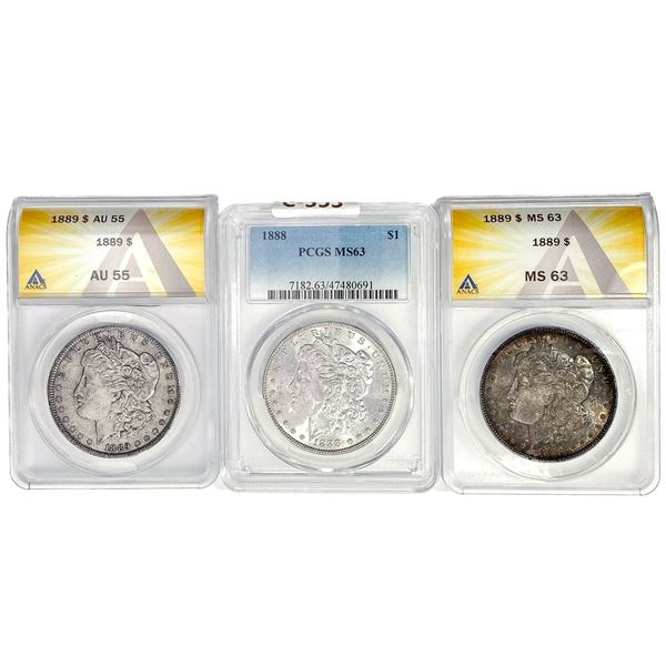 [3] Morgan Silver Dollars ANACS/PCGS AU/MS [1888,