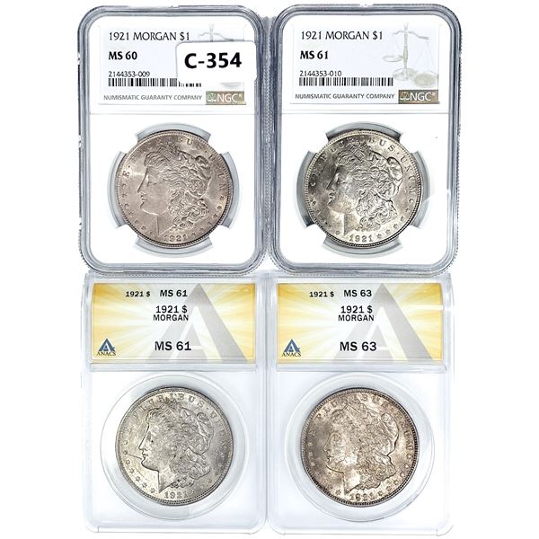 [4] 1921 Morgan Silver Dollars ANACS/NGC MS61-63