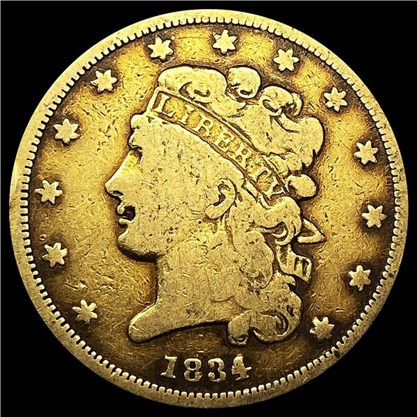 1834 $5 Gold Half Eagle LIGHTLY CIRCULATED