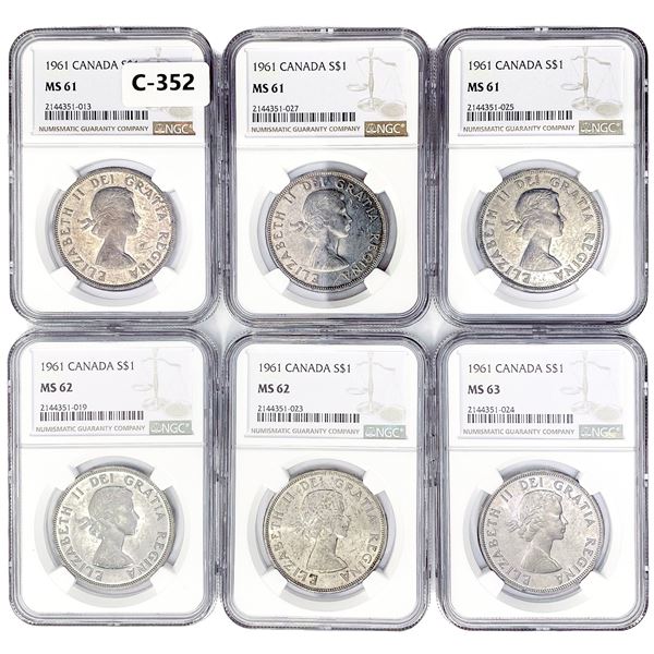 [6] 1961 Canada Silver Dollars NGC MS61-63