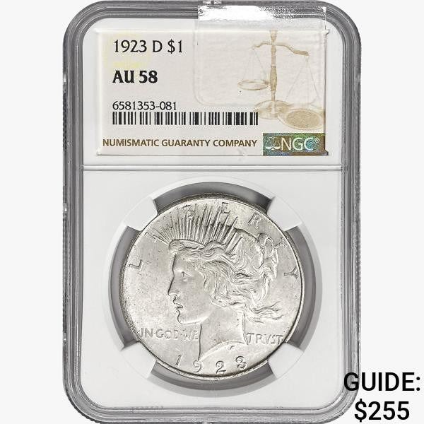 1923-D Silver Peace Dollar NGC AU58