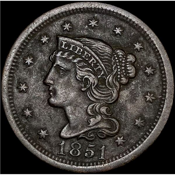 1851 Braided Hair Large Cent CHOICE AU43070 - 1851 Braided Hair Large Cent CHOICE AU