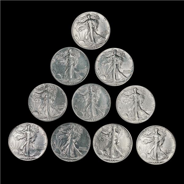 [10] Walking Half Dollars ((4) 1934, 1936, 1939-D,
