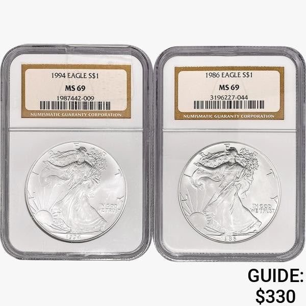 [2] 2004 & 2017 Silver Eagle ANACS/PCGS SP/MS69/70