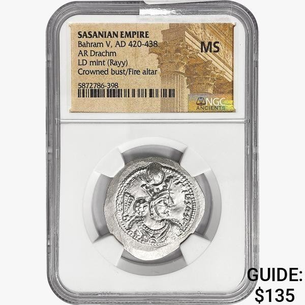 AD 420-438 Sasanian Empire AR Drachm NGC MS