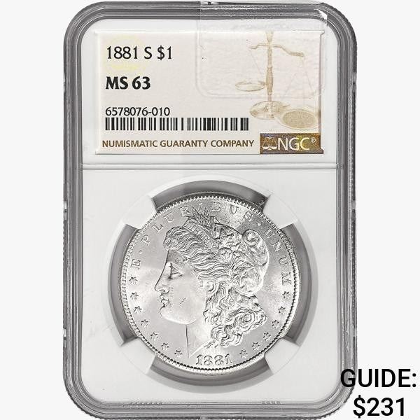 1881-S Morgan Silver Dollar NGC MS63