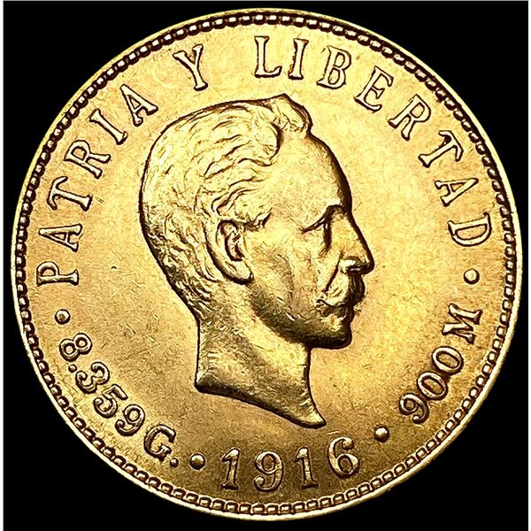 1916 Cuba .2419oz Gold 5 Pesos CLOSELY UNCIRCULATE